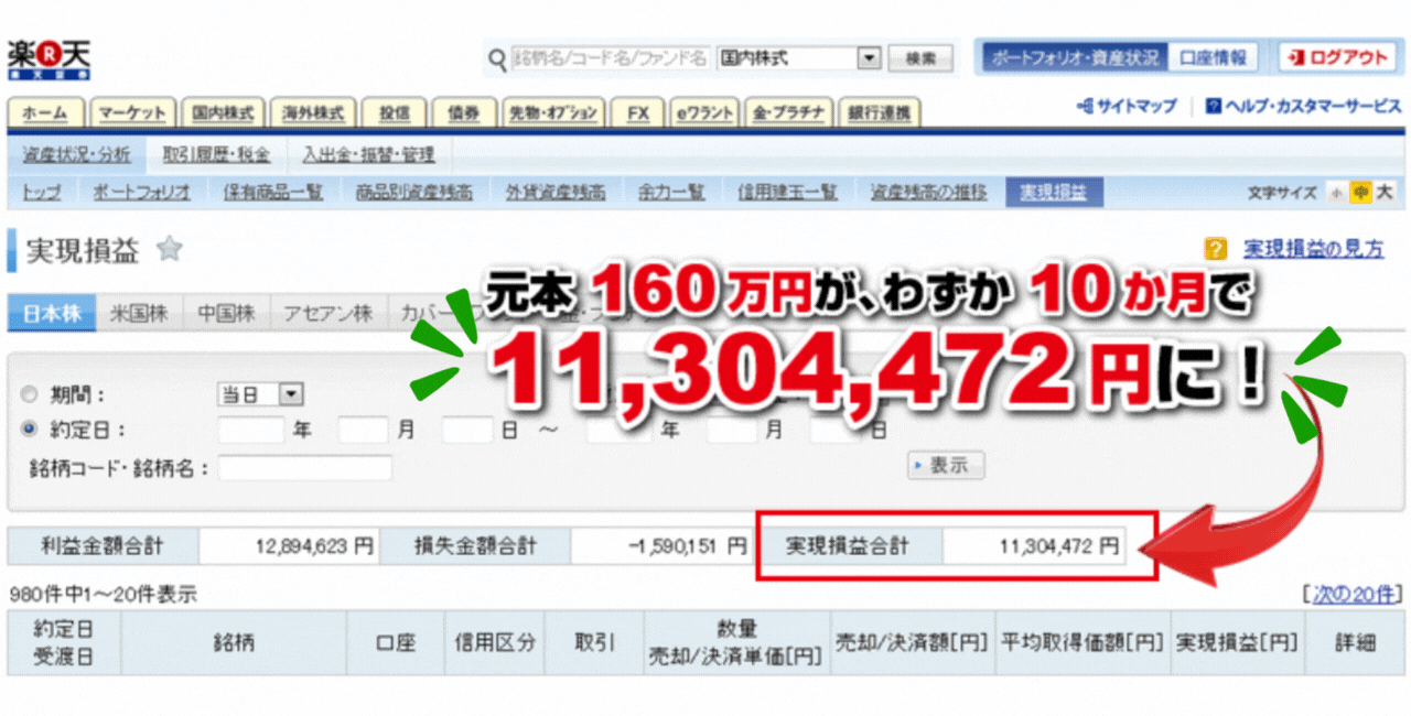 というのもこの波乗り株投資法、1日たった5分で稼げ、再現性抜群なのは当然、しかも損切することは一切ない画期的な方法なんです。その証拠がこちら。