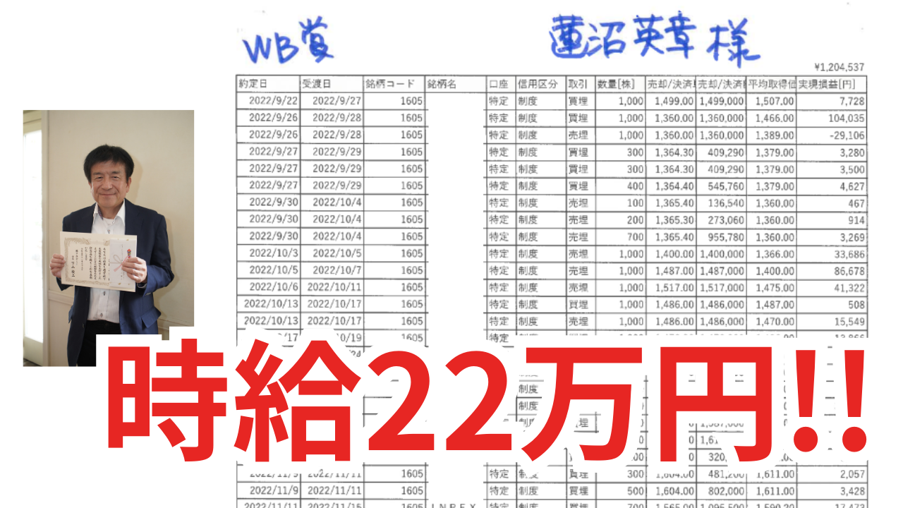 蓮沼さんは時給約22万円!