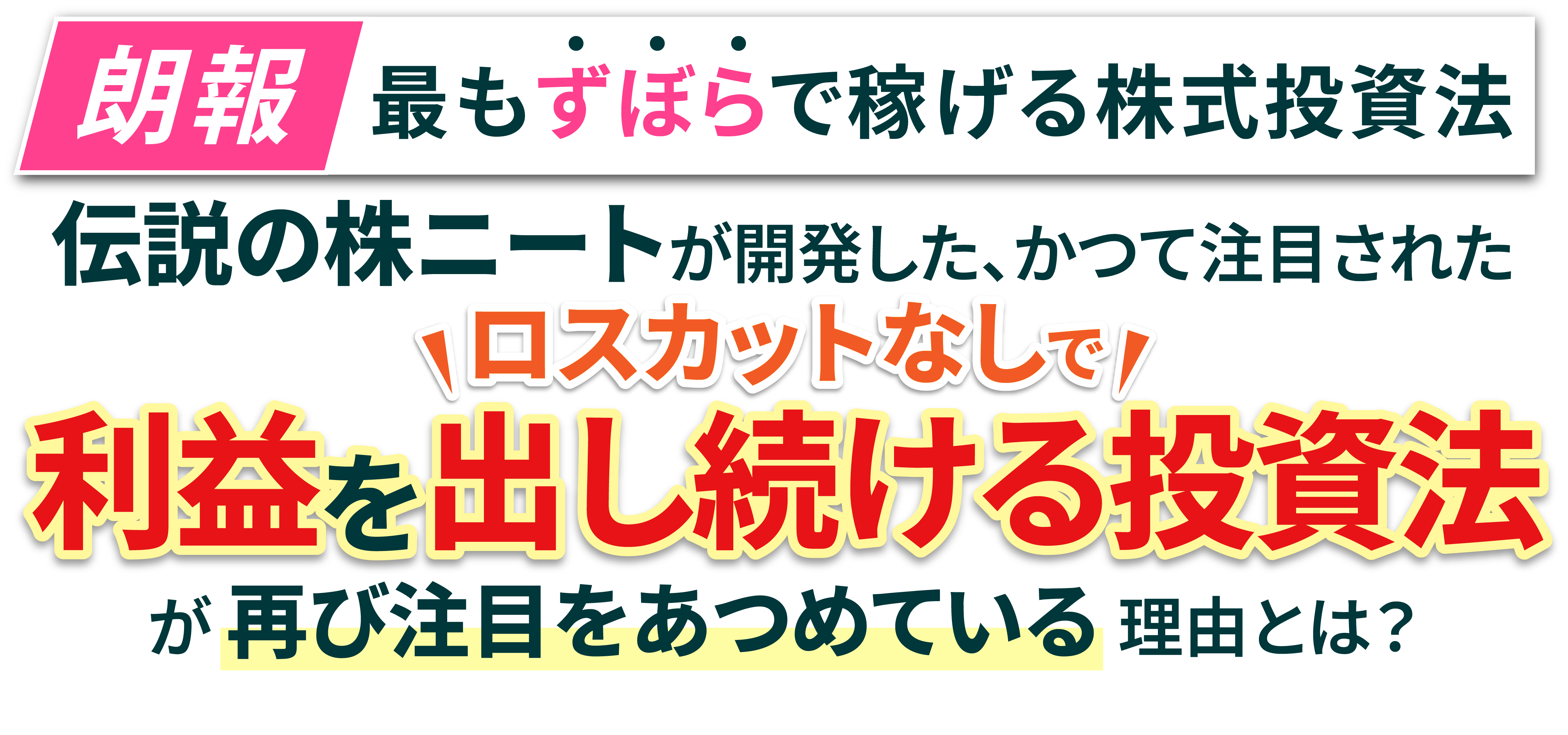 初心者の方から圧倒的に支持されるその理由は、「基本はロスカットしない!」「とにかくルールがシンプル!!」。 株式投資では、どんな動画や書籍、スクールでも